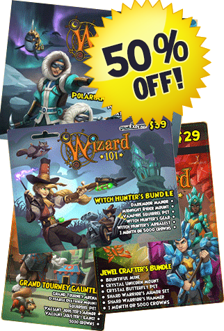 Now through Wednesday, June 14th save 50% OFF online bundles for your Wizard! The Witch Hunter's, Grand Tourney, Jewel Crafter's and Polarian Explorer's Bundle are all on sale for a limited time only.