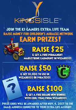 KingsIsle is happy to announce we will once again be participating in the Extra Life charity gaming marathon. What’s so great about Extra Life? Their site explains why this is a great cause, and we agree. What could be better than gaming while helping raise funds for your local hospitals? If you’re worried about 24 hours of gaming, please remember that you don’t have to play for 24 hours straight.