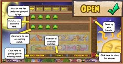 | The Practice Pet Derby is a good way to learn the course and obstacles for each different track, and see which track is best suited for your pet. Practice Derby races are classed by Easy, Medium, Hard and Epic. You can create a new match, Quick Join a match that has already been created or choose the match you want to join and click the Join button. |   |